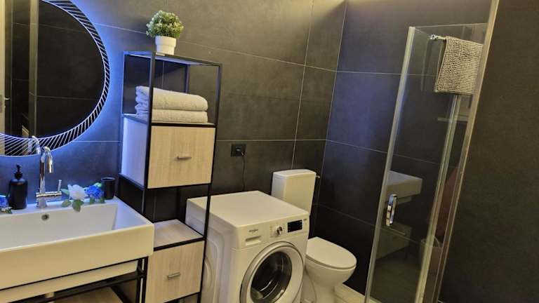 Die Ferienwohnung besteht aus einem Schlafzimmer, einem Wohnzimmer und einer voll ausgestatteten Küchenzeile mit Kühlschrank und Kaffeemaschine. Die Unterkunft verfügt zudem über ein Badezimmer mit Dusche und Haartrockner. Handtücher und Bettwäsche werden bereitgestellt. Ganztägig Klimaanlage sorgt für zusätzlichen Komfort.