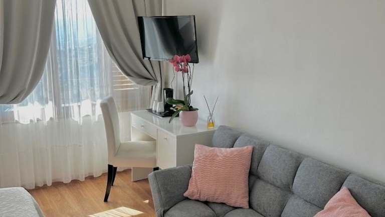 Die klimatisierten Zimmer im Hotel Villa Greta verfügen über einen Schreibtisch, Sat-TV und ein eigenes Bad. Die meisten Zimmer bieten zudem einen Balkon, von dem aus Sie die Aussicht genießen können.