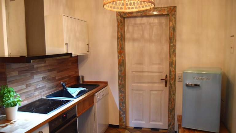 Die Ferienwohnung verfügt über zwei Schlafzimmer, eine gut ausgestattete Küche mit Kühlschrank und Geschirrspüler, ein Wohnzimmer und einen TV. Es sind zudem Gartenmöbel vorhanden.