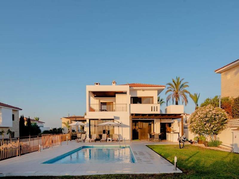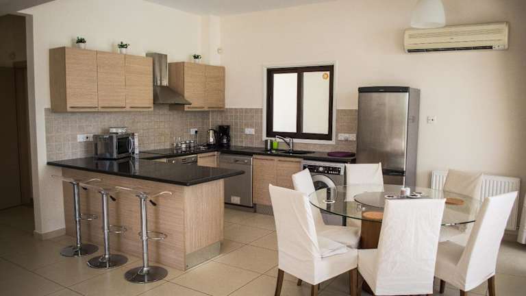 Die geräumige Villa Hera in Agios Theodhoros ist der perfekte Ort für einen entspannten Urlaub. Mit einem eigenen Pool, einer möblierten Sonnenterrasse und einem atemberaubenden Blick auf die Berge und das Mittelmeer bietet die Villa alle Annehmlichkeiten, die Sie für einen unvergesslichen Aufenthalt benötigen. Mit moderner Einrichtung, kostenfreiem WLAN und einer gut ausgestatteten Küche ist die Villa ideal für Selbstversorger. Genießen Sie gemütliche Abende im geräumigen Wohnzimmer oder spielen Sie eine Runde Billard im Spielezimmer. Die Villa bietet drei komfortable Schlafzimmer, zwei davon mit eigenem Bad. Im Garten können Sie den Grill nutzen und im Freien speisen. Die Villa Hera liegt nur 600 m vom Sandstrand entfernt und ist der ideale Ausgangspunkt, um die Umgebung zu erkunden. Kostenlose Parkplätze stehen Ihnen zur Verfügung und der internationale Flughafen Larnaca ist nur 25 km entfernt.