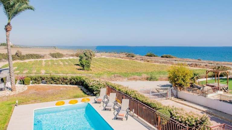 Die Villa Hera befindet sich in Agios Theodhoros und liegt nur 600 m vom Sandstrand entfernt. Von der Villa aus haben Sie einen herrlichen Blick auf die Berge und das Mittelmeer. Die Umgebung bietet eine ruhige und entspannte Atmosphäre, ideal für einen erholsamen Urlaub. Das Stadtzentrum von Larnaca erreichen Sie nach einer kurzen Fahrt von 38 km und der internationale Flughafen Larnaca liegt nur 25 km entfernt.