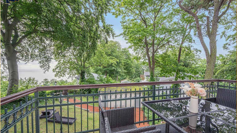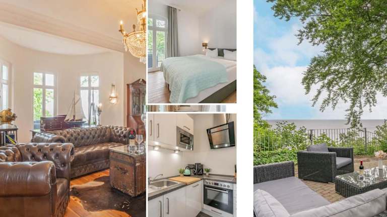 Die Unterkunft Hohe Buchen Apartment 1 bietet Übernachtungsmöglichkeiten mit direktem Blick auf das Meer. Die Ferienwohnung verfügt über eine Terrasse und einen Balkon, ideal, um die Umgebung zu genießen.