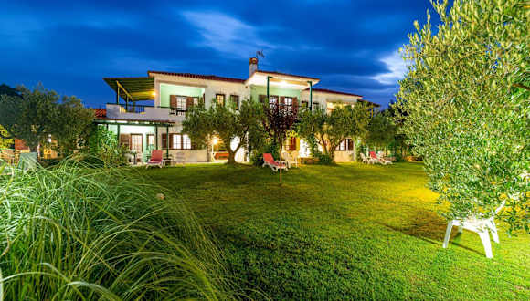 Die Villa Hrisavgi befindet sich in Nikiti in der Region Mazedonien. Der Strand Paralia Kosma Pigadi ist in einer Entfernung von 2,3 km erreichbar. Der nächstgelegene Flughafen, der Flughafen Thessaloniki, liegt 86 km von der Unterkunft entfernt.