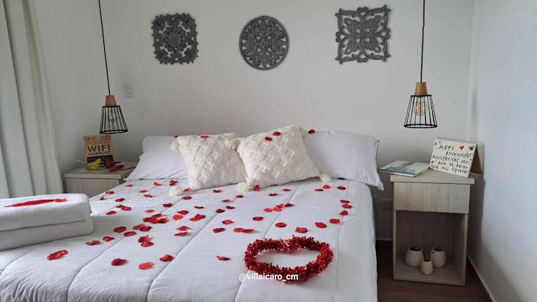 Die Villa verfügt über zwei Schlafzimmer, eine Küche ausgestattet mit Kühlschrank und Mikrowelle, einen Flachbild-TV sowie einen Sitzbereich. Des Weiteren sind zwei Badezimmer vorhanden, die jeweils mit einer Badewanne oder Dusche ausgestattet sind. Handtücher und Bettwäsche werden bereitgestellt.
