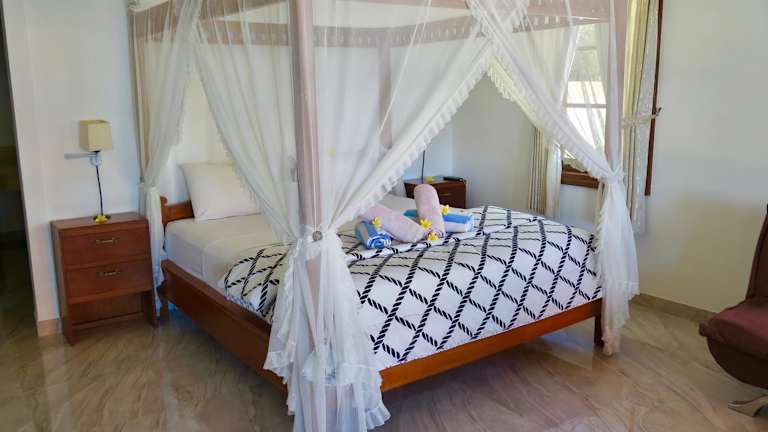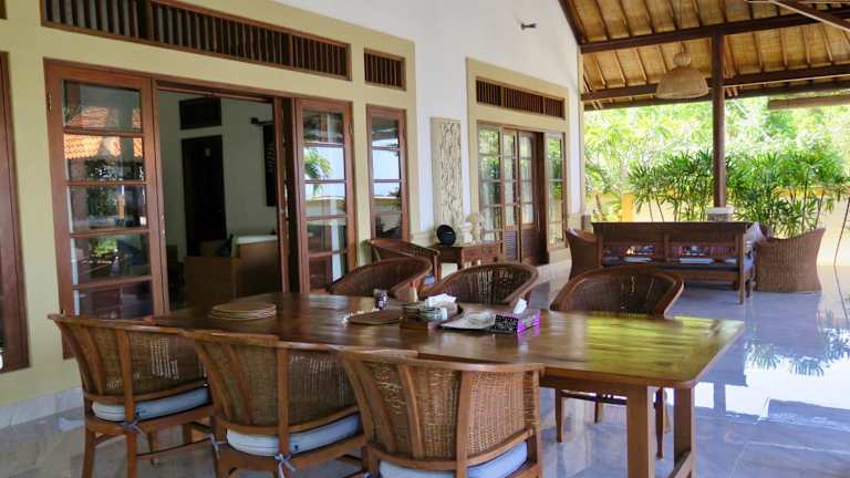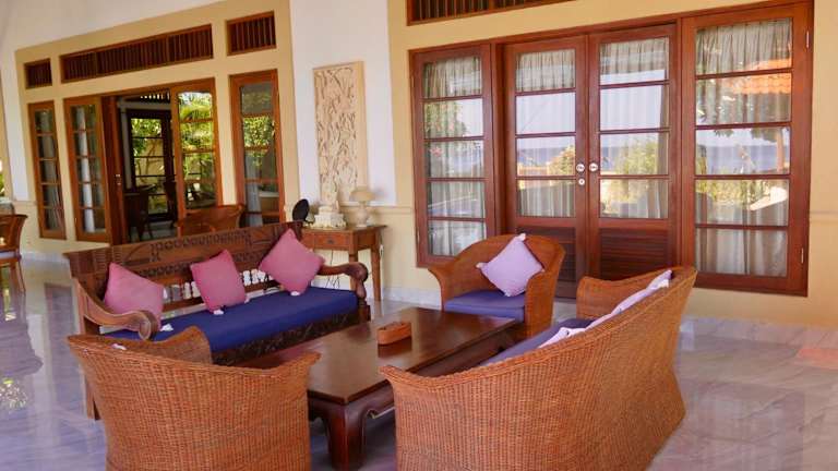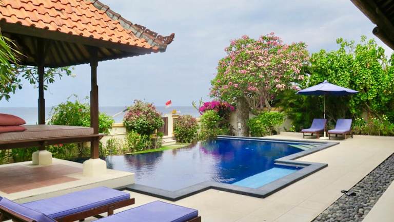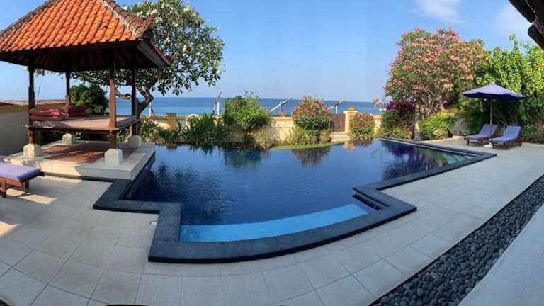 Die Villa Ida Villas an der Ostküste von Bali bietet Ihnen eine traumhafte Unterkunft direkt am Strand mit einem Außenpool und einem atemberaubenden Meerblick. Genießen Sie den direkten Zugang zum Strand von den wunderschön angelegten Gärten der Villa aus. Die Zimmer sind modern im balinesischen Stil eingerichtet und verfügen über eine Klimaanlage oder einen Ventilator sowie ein eigenes Bad. Einige Zimmer bieten zusätzlich einen TV und einen DVD-Player. Der Essbereich auf der Terrasse bietet einen herrlichen Blick auf den Garten und den Pool. Die Villa Ida Villas befindet sich in der Nähe von Ubuds Reisterrassen, Kunstgeschäften und Museen und ist nur eine Autostunde entfernt. Der internationale Flughafen Denpasar ist in etwa zwei Stunden mit dem Auto erreichbar. Wählen Sie zwischen Villen mit drei oder zwei Schlafzimmern.