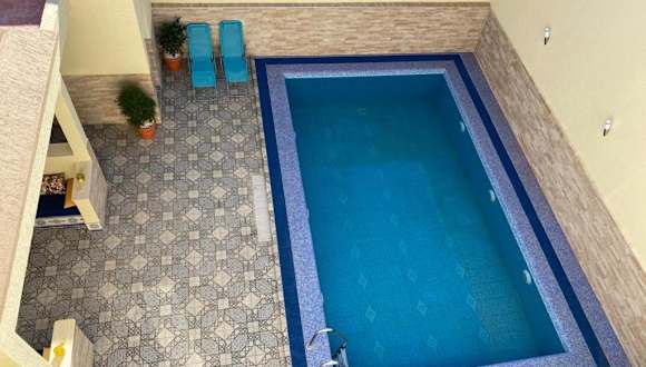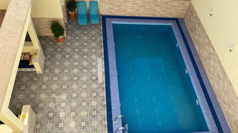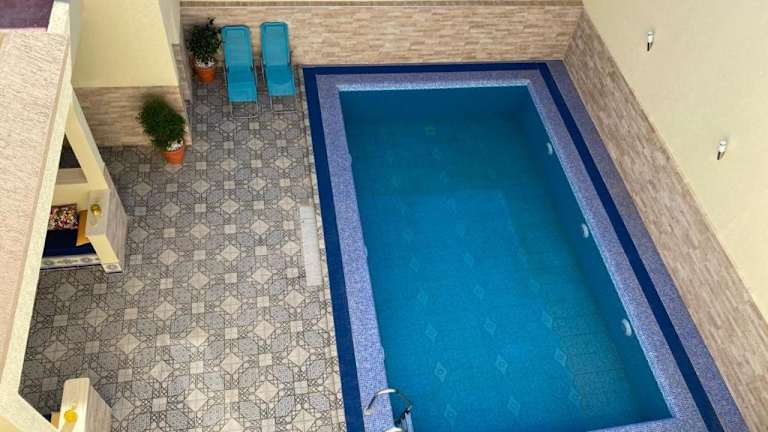 Die Villa Ihaddadene in Nador bietet luxuriöse Unterkünfte mit privatem Pool, Balkon und herrlichem Poolblick. Genießen Sie den saisonalen Außenpool, die Terrasse und das kostenfreie WLAN. Die klimatisierte Villa verfügt über 2 Schlafzimmer, ein geräumiges Wohnzimmer, eine voll ausgestattete Küche mit Kühlschrank und Kaffeemaschine sowie 2 Badezimmer mit Dusche. Kostenlose Privatparkplätze stehen zur Verfügung. Der internationale Flughafen Nador ist nur 17 km entfernt.
