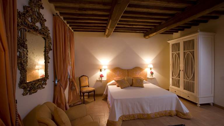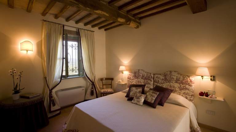 Die klimatisierten Zimmer im Villa il Castagno Wine & Resort sind gemütlich und modern eingerichtet. Jedes Zimmer verfügt über einen Flachbild-TV und ein eigenes Bad mit Bidet.