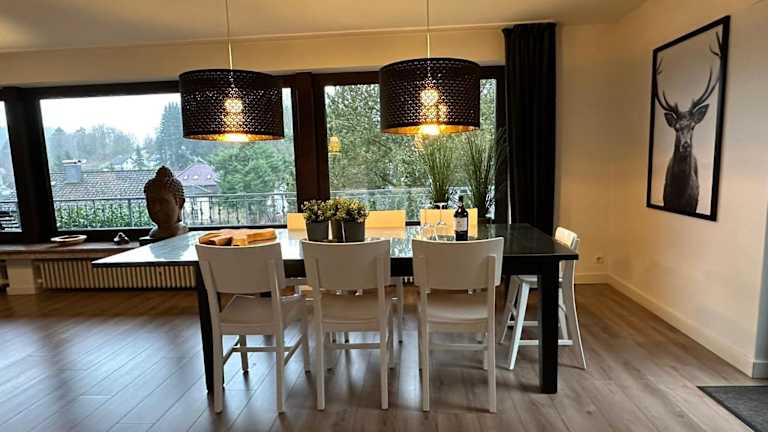 Die Villa Im Bongert - Tor zum Nationalpark Eifel befindet sich in Hellenthal, einer Region mit umfassenden Freizeitmöglichkeiten wie Wandern, Skifahren und Fahrradfahren. Die Umgebung bietet eine naturnahe Atmosphäre mit blick auf die Berge.