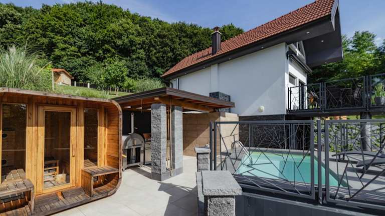 Die Villa in the Vineyard with Pool, HotTub & Sauna bietet eine Vielzahl von Freizeitmöglichkeiten. Entspannen Sie im Außenpool, nehmen Sie an Wanderungen oder Radtouren teil oder genießen Sie einfach die Ruhe und Schönheit des Gartens. Zusätzlich steht Ihnen ein Spa- und Wellnesscenter zur Verfügung, in dem Sie in der Sauna, im Whirlpool oder im Thermalbad entspannen können. Lassen Sie den Alltag hinter sich und genießen Sie Ihren Aufenthalt in dieser luxuriösen Villa.