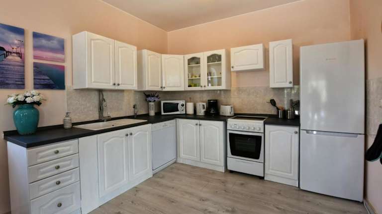 Die Villa umfasst 3 Schlafzimmer, ein Wohnzimmer und eine voll ausgestattete Küche mit Kühlschrank und Wasserkocher. Ein Badezimmer mit Dusche und Haartrockner ist ebenfalls vorhanden. Zur Unterhaltung steht ein TV mit Kabelkanälen zur Verfügung.