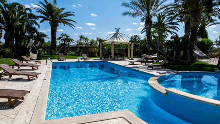 Die Villa Incoronata in Nardò ist ein perfektes Ferienhaus für Familien oder Gruppen, die eine ruhige und geräumige Unterkunft suchen. Mit 4 Schlafzimmern und einem großen Garten bietet die Villa genügend Platz für alle Gäste. Die beiden Swimmingpools und die Sonnenterrasse laden zum Entspannen und Genießen ein. Die Villa ist gut ausgestattet und verfügt über WLAN und kostenlose Parkplätze. In der Nähe befindet sich die schöne Küste von Santa Caterina und der Flughafen Brindisi ist ebenfalls gut erreichbar.
