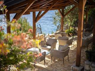 Im Restaurant der Villa Jagodna können Sie regionale Spezialitäten und Fischgerichte genießen. Das Restaurant bietet auch hausgemachten Wein und Olivenöl, die aus dem eigenen Anbau stammen. Die große überdachte Terrasse mit Meerblick lädt zum Entspannen und Genießen ein.
