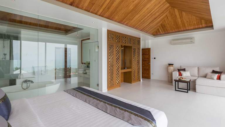 Die Villa Jaliza - Chaweng Noi bietet 6 luxuriöse Schlafzimmer und 7 Badezimmer, die alle mit hochwertiger Bettwäsche und Handtüchern ausgestattet sind. Die Villa verfügt über einen geräumigen Wohnbereich mit einem Flachbild-Sat-TV und einen Essbereich für gesellige Mahlzeiten. Die voll ausgestattete Küche ermöglicht es Ihnen, Ihre eigenen Mahlzeiten zuzubereiten. Auf der Terrasse können Sie den atemberaubenden Meerblick genießen. Die Villa ist klimatisiert und verfügt über einen zusätzlichen Sitzbereich. Die Badezimmer sind mit einem Bidet, einer Dusche und einer Badewanne ausgestattet.