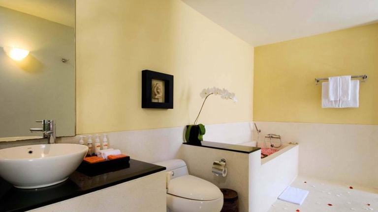 Die Villen der Villa Jerami sind im modernen, minimalistischen Stil gestaltet und bieten geräumige Ess- und Wohnbereiche. Die offenen Bereiche der Villen lassen viel Tageslicht und frische Luft herein und schaffen so eine angenehme Atmosphäre. Die Villen verfügen über moderne Annehmlichkeiten wie Kabel-TV, Kaffee- und Teezubereitungsmöglichkeiten und kostenloses WLAN.