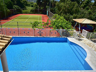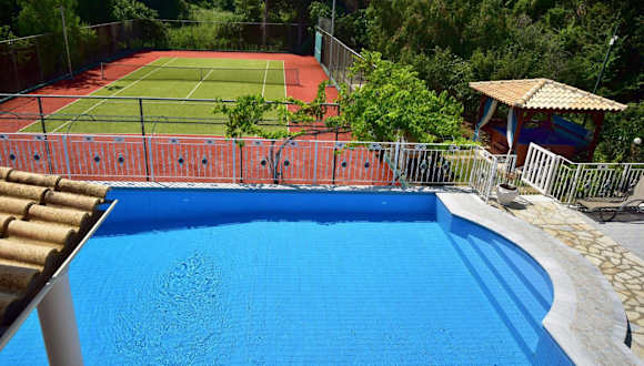 Die moderne Villa Jolie in Roda ist die ideale Unterkunft für einen entspannten Urlaub. Mit einem Außenpool, einem Tennisplatz und kostenfreiem WLAN bietet die Villa alle Annehmlichkeiten, die Sie für einen perfekten Aufenthalt benötigen. Die klimatisierte Unterkunft verfügt über ein Wohnzimmer mit Kamin, eine voll ausgestattete Küche und ein eigenes Bad für jedes Schlafzimmer. Genießen Sie den atemberaubenden Blick auf das Ionische Meer und den Fluss. Darüber hinaus können Sie im Fitnesscenter trainieren und in der Umgebung Aktivitäten wie Radfahren, Reiten und Angeln nachgehen. Kostenlose Parkplätze stehen Ihnen ebenfalls zur Verfügung.