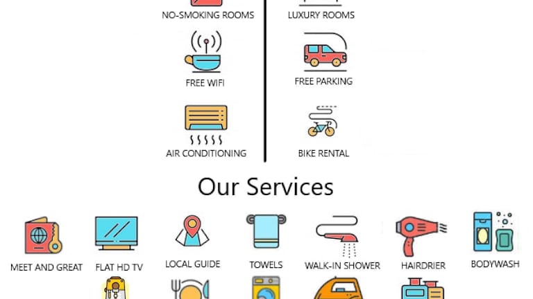 Die Gästezimmer sind mit Klimaanlage, einem Flachbild-TV mit Satellitenkanälen, einem Kühlschrank, einer Kaffeemaschine, einem Bidet, kostenlosen Pflegeprodukten und einem Kleiderschrank ausgestattet. Jedes Zimmer verfügt über Bettwäsche und Handtücher.