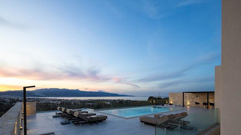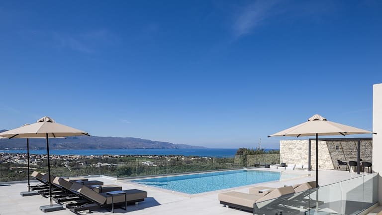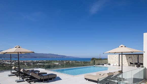 Die Villa Kafkales Maleme in Maleme bietet eine luxuriöse Unterkunft mit atemberaubendem Meerblick und privatem Pool. Die Villa verfügt über drei Schlafzimmer, ein geräumiges Wohnzimmer und eine voll ausgestattete Küche. Entspannen Sie im Whirlpool und genießen Sie die Annehmlichkeiten dieser exklusiven Unterkunft.