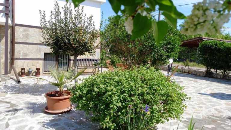 Die Villa Kalina in Velika bietet geräumige Unterkünfte mit mehreren Balkonen und einer eigenen Taverne. Genießen Sie den Komfort von 6 Schlafzimmern, einem gemütlichen Wohnzimmer, einer voll ausgestatteten Küchenzeile und 3 Bädern. Entspannen Sie im Garten mit Grillmöglichkeiten, Spielplatz und Liegestühlen. Nutzen Sie den kleinen Fitnessraum oder spielen Sie Darts und Tischfußball. Kostenloses WLAN wird über einen USB-Stick bereitgestellt und im Sommer können Lebensmittel kostenlos geliefert werden. Die Villa bietet kostenfreie Parkplätze und ist gut mit dem Bus erreichbar. Entdecken Sie die Umgebung mit dem Strand von Lozenets, Primorsko und Burgas in der Nähe.