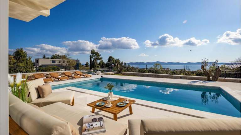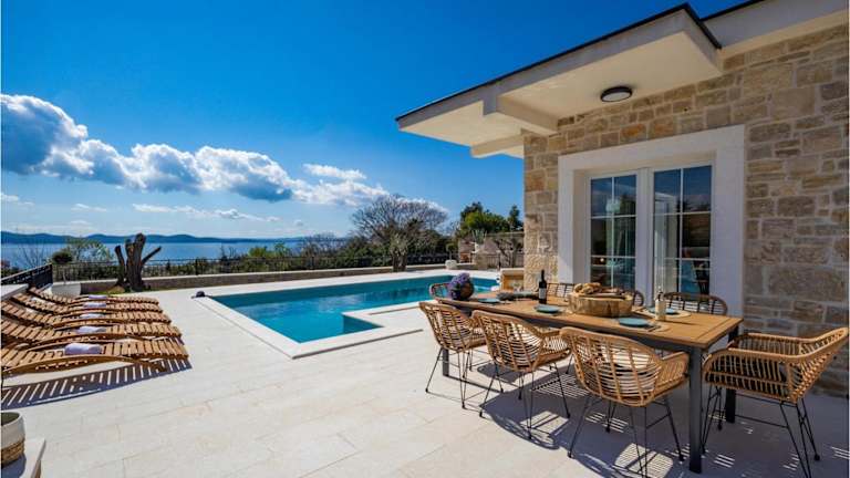 Die Villa Katarina Diklo ist eine moderne Unterkunft mit einem Außenpool und bietet einen schönen Meerblick. Die Unterkunft zeichnet sich durch ihre klimatisierte Atmosphäre und durchdachte Annehmlichkeiten aus. Die Gäste genießen kostenlosen WLAN-Zugang und können von einem Privatparkplatz Gebrauch machen. Die Unterkunft verfügt über eine Terrasse, die einen angenehmen Außenbereich bietet.