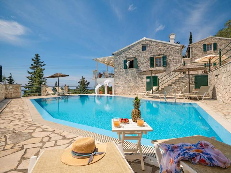 Entspannen Sie am eigenen Pool der Villa Katerini und genießen Sie die Sonne auf den Sonnenliegen. Der große Balkon bietet zudem einen herrlichen Blick auf das Ionische Meer. Nutzen Sie die Grillmöglichkeiten auf der Terrasse und speisen Sie im Freien.
