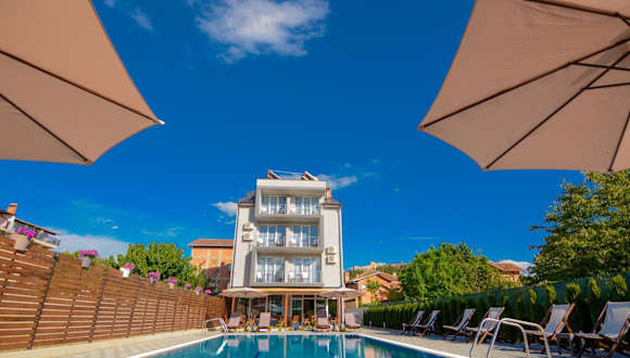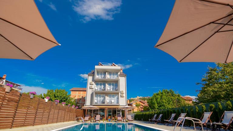 Die Villa Kotlar ist ein charmantes 4-Sterne-Hotel in Ohrid und bietet erstklassige Unterkünfte mit Blick auf den Strand. Der saisonale Außenpool, der Garten und die Terrasse laden zum Entspannen ein. Die klimatisierten Zimmer sind geschmackvoll eingerichtet und verfügen über kostenfreies WLAN sowie ein eigenes Badezimmer. Das Hotel bietet zudem einen Flughafentransfer und einen Fahrradverleih. Genießen Sie Ihren Aufenthalt in diesem wunderbaren Hotel und erkunden Sie die nahegelegenen Strände und Sehenswürdigkeiten.