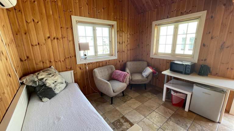Die Zimmer in der Villa Krågenes sind komfortabel und bieten alles, was Sie für einen angenehmen Aufenthalt benötigen. Genießen Sie den Luxus einer klimatisierten Unterkunft und entspannen Sie in Ihrem eigenen Badezimmer. Von Ihrer Terrasse aus haben Sie einen wunderschönen Blick auf den See, der für eine entspannte Atmosphäre sorgt.