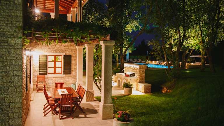 Die Villa umfasst vier Schlafzimmer, eine voll ausgestattete Küche mit Kühlschrank und Geschirrspüler, ein Flachbild-TV, einen Sitzbereich sowie vier Badezimmer, die jeweils mit einer Dusche ausgestattet sind.
