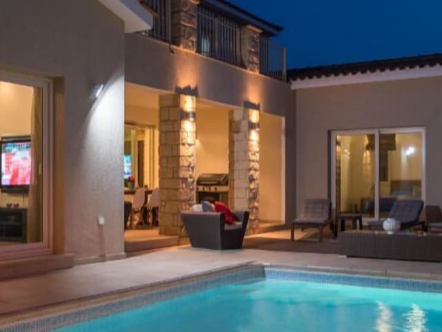 Die Villa Kristia ist eine luxuriöse Unterkunft mit einem eigenen Pool und zahlreichen Annehmlichkeiten. Sie bietet geräumige Zimmer, eine voll ausgestattete Küche und mehrere Badezimmer. Der Außenpool, der Garten und die Grillmöglichkeiten laden zum Entspannen und Genießen ein. Das freundliche Personal spricht Griechisch und Englisch und steht Ihnen bei Bedarf zur Verfügung. Die Villa befindet sich in der Nähe der städtischen Bäder von Paphos und nur wenige Kilometer von den Stränden SODAP und Vrisoudia entfernt.