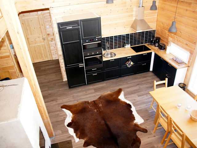 Die Villa Kuukkeli ist ein geräumiges Ferienhaus zur Selbstverpflegung mit einem gemütlichen Essbereich und einer voll ausgestatteten Küche, die einen Geschirrspüler und einen Backofen enthält. Ein Flachbild-TV sorgt für Unterhaltung und eine eigene Sauna bietet Entspannung nach einem aktiven Tag in der Natur. Die Sonnenterrasse lädt zum Verweilen und Genießen der Umgebung ein.