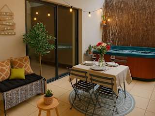 Die Villa l'Eden de Camargue- Spa et Nature ist eine wunderschöne Unterkunft in Candillargues, die Ihnen einen entspannten Aufenthalt bietet. Genießen Sie den Zugang zum Whirlpool und die Nähe zu Aktivitäten wie Wandern, Angeln und Radfahren. Die Villa verfügt über zwei Schlafzimmer, ein gemütliches Wohnzimmer und eine voll ausgestattete Küche. Handtücher und Bettwäsche werden gestellt. Entdecken Sie die Umgebung mit dem Einkaufszentrum Odysseum und der Montpellier Arena in der Nähe. Der Flughafen Montpellier ist ebenfalls gut erreichbar.