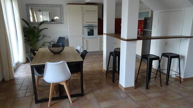 Die Villa LA BELLE ETOILE verfügt über 2 gemütliche Schlafzimmer, in denen Sie nach einem ereignisreichen Tag zur Ruhe kommen können. Das Ferienhaus ist mit einem Flachbild-TV ausgestattet, damit Sie Ihre Lieblingssendungen verfolgen können. Die Küche ist komplett ausgestattet mit einem Geschirrspüler und einer Mikrowelle, so dass Sie Ihre eigenen Mahlzeiten zubereiten können. Eine Waschmaschine steht ebenfalls zur Verfügung, um Ihnen den Aufenthalt so angenehm wie möglich zu gestalten. Das Badezimmer verfügt über eine Dusche und ist modern eingerichtet. Die Villa ist klimatisiert, so dass Sie auch an heißen Tagen eine angenehme Temperatur haben.
