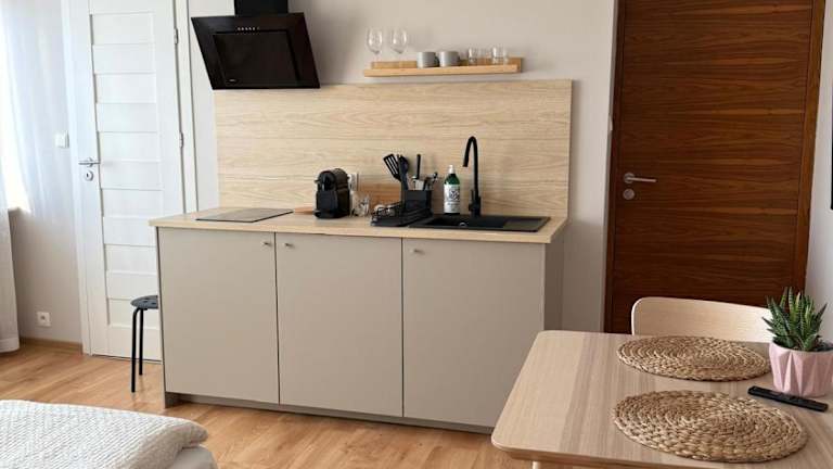 Die Zimmer in der Willa Laff sind komfortabel und gemütlich eingerichtet. Jedes Zimmer verfügt über einen eigenen Balkon, auf dem Sie den Blick auf die Umgebung genießen können. Zur Ausstattung gehören auch Kabel-TV und ein Essbereich mit einem Kühlschrank, Küchenutensilien und einem Wasserkocher. Das private Badezimmer ist mit einer Dusche ausgestattet und Bettwäsche wird gestellt.