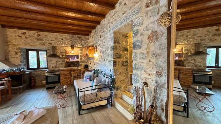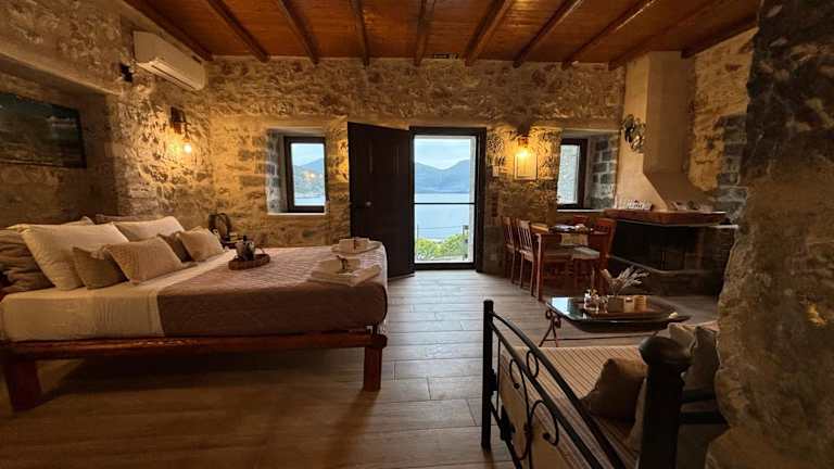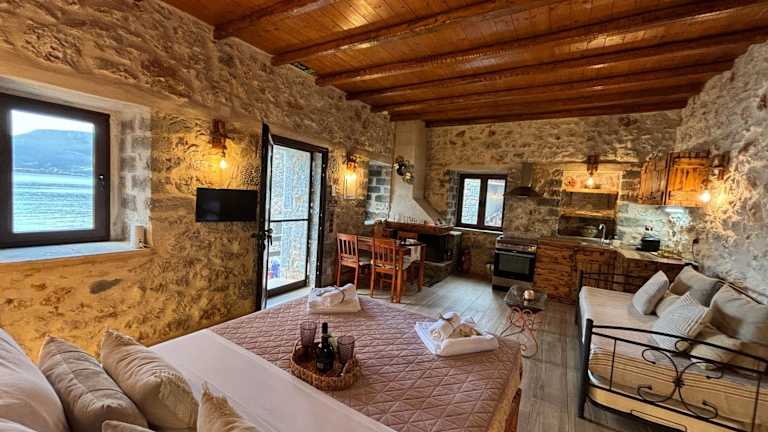 Die Villa Lagadaki the sea view befindet sich direkt am Strand und bietet Zugang zu einem Garten sowie zu einer Terrasse. Die Umgebung ist geprägt von einer naturnahen Atmosphäre, und die Unterkunft liegt etwa 19 km von den Höhlen von Diros entfernt. Der nächste Flughafen, der Internationale Flughafen Kalamata, ist 101 km entfernt.
