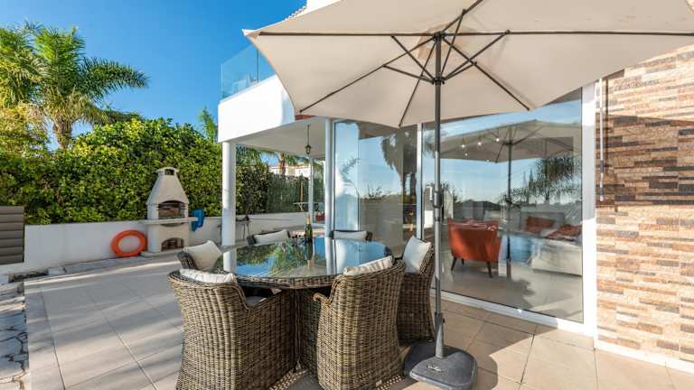 Die Villa verfügt über 5 geräumige Schlafzimmer, die Platz für große Familien oder Gruppen bieten. Das Wohnzimmer ist gemütlich eingerichtet und lädt zum Entspannen ein. Die voll ausgestattete Küche ermöglicht es Ihnen, Ihre eigenen Mahlzeiten zuzubereiten. Es gibt auch 3 Badezimmer mit Dusche und Haartrockner. Die Villa ist klimatisiert und verfügt über einen Sitzbereich, in dem Sie die Aussicht auf das Meer genießen können.