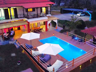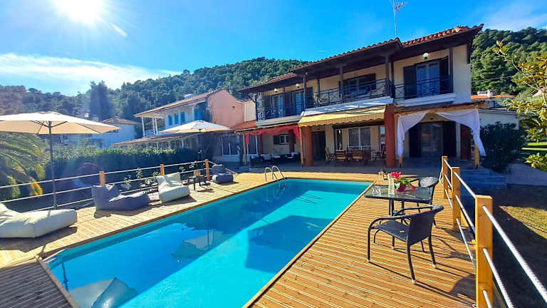 Das Hotel Villa Laguna in Vourvourou auf der Halbinsel Chalkidiki bietet Ihnen eine erstklassige Lage direkt am Strand und einen atemberaubenden Meerblick vom Balkon aus. Genießen Sie die entspannte Atmosphäre auf der Terrasse und das kostenlose WLAN. Die Villa ist klimatisiert und verfügt über einen gemütlichen Sitzbereich mit Kamin und Flachbild-TV. Die voll ausgestattete Küche bietet alles, was Sie für einen angenehmen Aufenthalt benötigen. Die Badezimmer sind mit Dusche oder Badewanne ausgestattet. Das Zentrum von Vourvourou erreichen Sie nach nur 5 km und Nikiti liegt nur 10 km entfernt. Der Flughafen Thessaloniki ist etwa 90 km entfernt.