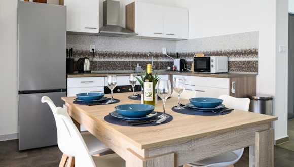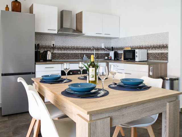 Die klimatisierten Wohneinheiten sind mit einem eigenen Badezimmer, einem Flachbild-TV, einer voll ausgestatteten Küchenzeile und einer Terrasse ausgestattet.