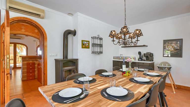 Die Villa Lau in Dénia bietet Ihnen ein komfortables Ferienhaus mit eigenem Pool und traumhaftem Meerblick. Mit 3 Schlafzimmern und 3 Badezimmern ist genug Platz für die ganze Familie oder eine Gruppe von Freunden. Das Haus verfügt über ein helles und geräumiges Wohnzimmer mit gemütlichen Sofas, einem Kamin und einem TV. Die voll ausgestattete Küche und die zusätzliche Küche auf der Außenterrasse ermöglichen Ihnen flexibles Kochen und Grillen im Freien. Mit dem Strand Les Rotes und dem Bahnhof in der Nähe können Sie die Umgebung problemlos erkunden.