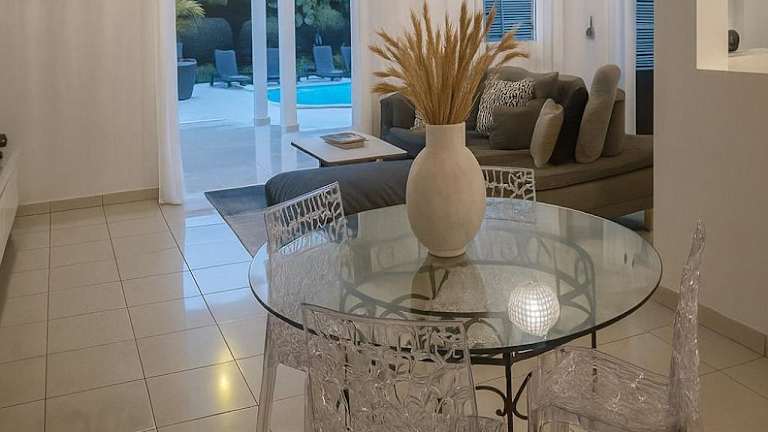 Die Villa Lawrencia ist ein komfortables Ferienhaus, das eine Vielzahl von Annehmlichkeiten bietet, darunter einen eigenen Pool und einen Garten. Zusätzlich stehen ein Grillbereich sowie kostenloses WLAN und Privatparkplätze zur Verfügung.