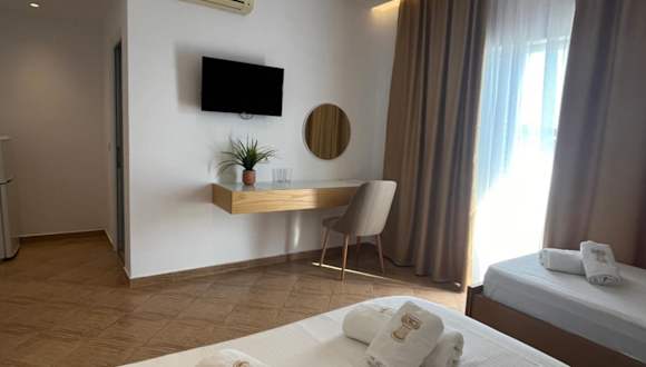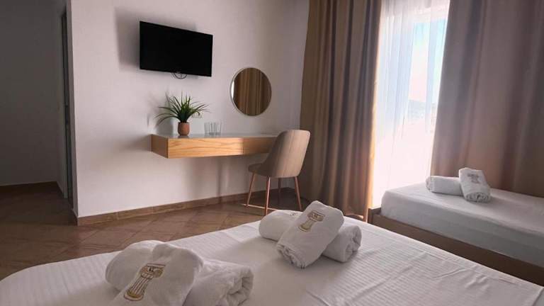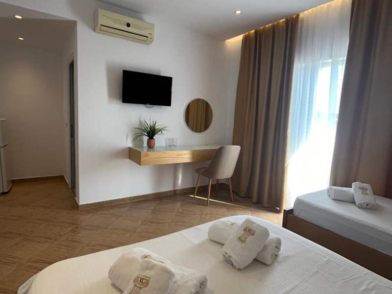 Das Hotel Villa-Leandro in Ksamil bietet seinen Gästen eine komfortable Unterkunft in der Nähe der wunderschönen Strände Ksamil und Bora Bora. Mit kostenfreiem WLAN und Grillmöglichkeiten sowie kostenfreien Privatparkplätzen ist es der ideale Ort, um die Schönheit von Ksamil zu erkunden. Die klimatisierten Zimmer sind geschmackvoll eingerichtet und verfügen über Annehmlichkeiten wie einen Flachbild-TV und eine Terrasse mit herrlichem Blick auf die Stadt oder die Berge. Einige Zimmer bieten sogar einen atemberaubenden Meerblick. Genießen Sie die Nähe zu den Stränden und dem Nationalpark Butrint, der nur wenige Kilometer entfernt liegt.
