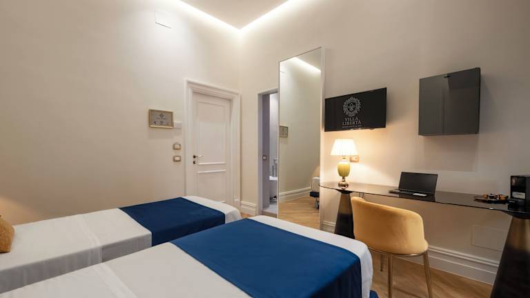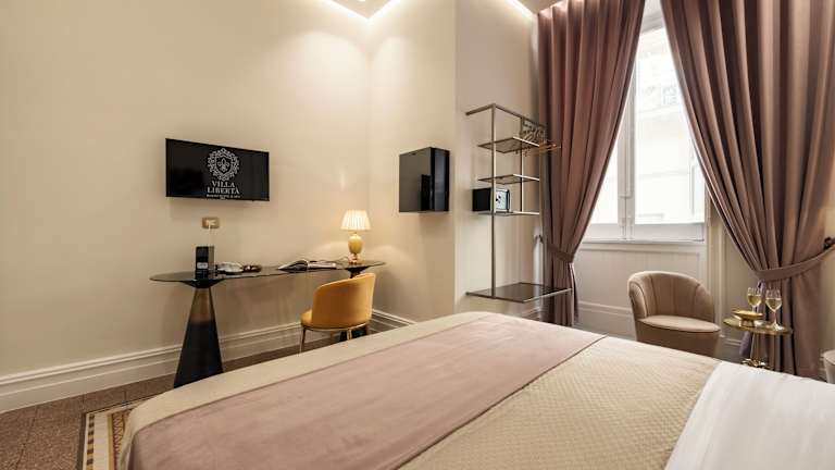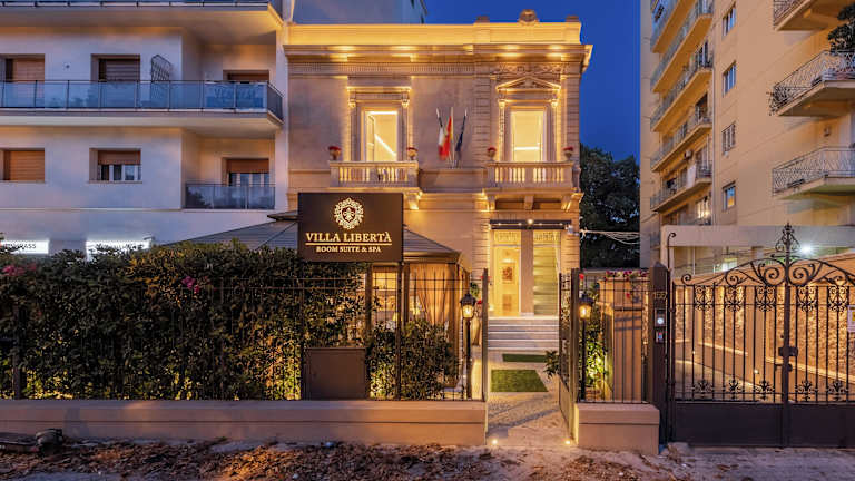 Die Villa Libertà bietet Übernachtungsmöglichkeiten in einem ruhigen Umfeld mit einem Garten, einem Privatparkplatz, einer Gemeinschaftslounge und einer Terrasse. Zu den Annehmlichkeiten gehören eine Bar, kostenfreies WLAN sowie ein kostenpflichtiger Flughafentransfer. Das Hotel ist als Nichtraucherunterkunft konzipiert und hat spezifische Regelungen in Bezug auf Feiern und das Mindestalter für den Check-in.