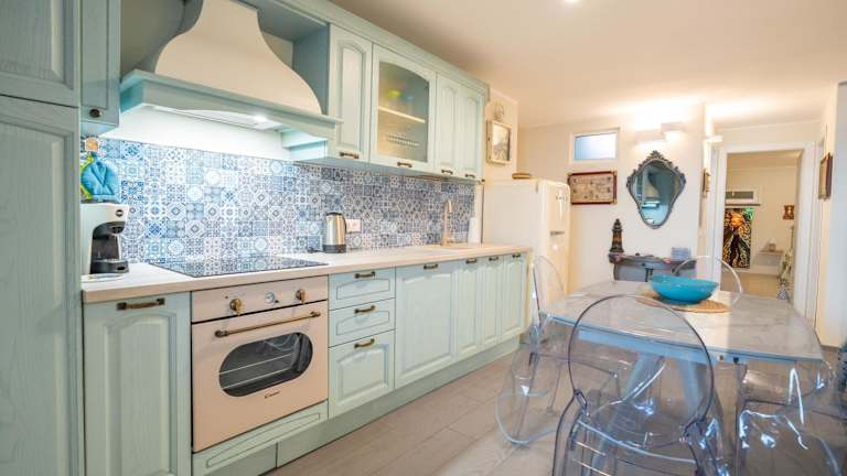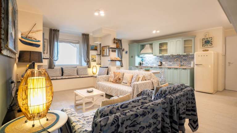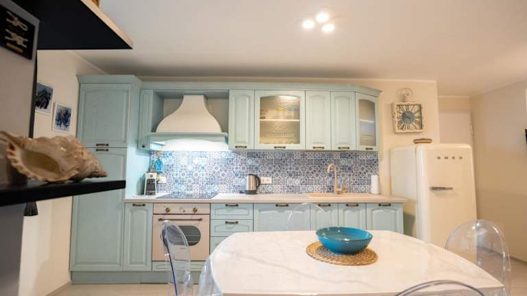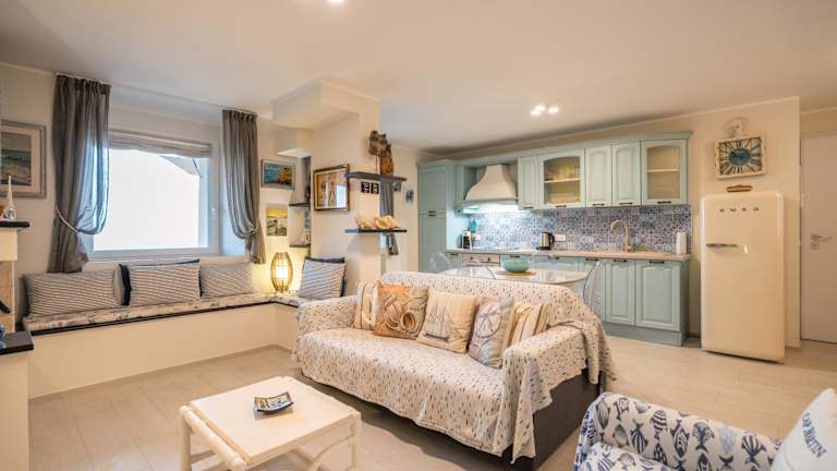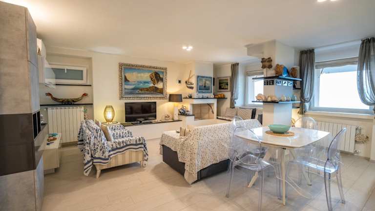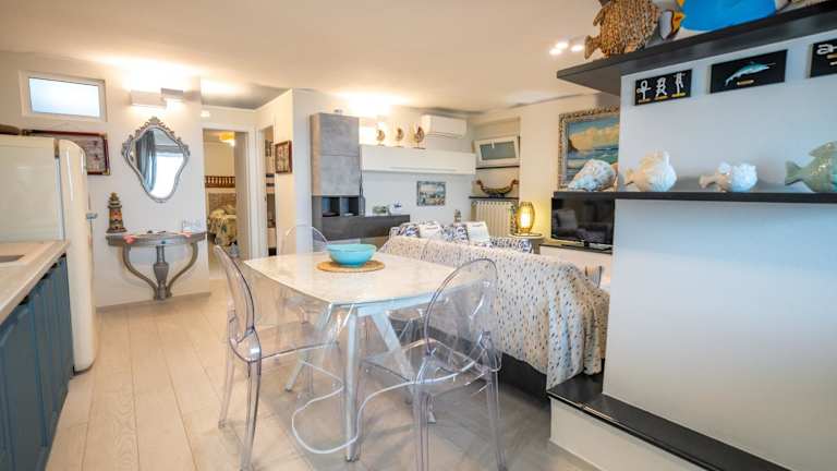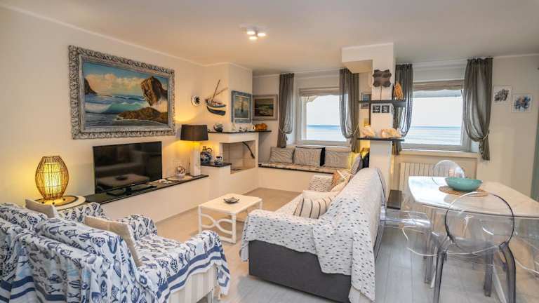 Die Unterkunft befindet sich direkt am Strand und bietet einen Blick auf das Meer. In der Nähe liegen der Strand Spiaggia di Punta Crena, etwa 2,3 km entfernt, sowie Baia dei Saraceni in einer Entfernung von 2,5 km. Grotte di Toirano ist 23 km von der Unterkunft entfernt. Der Flughafen Genua Cristoforo Colombo ist 59 km entfernt.