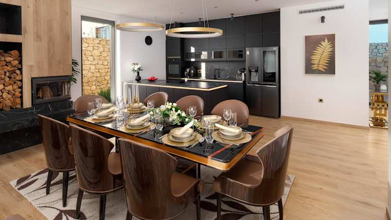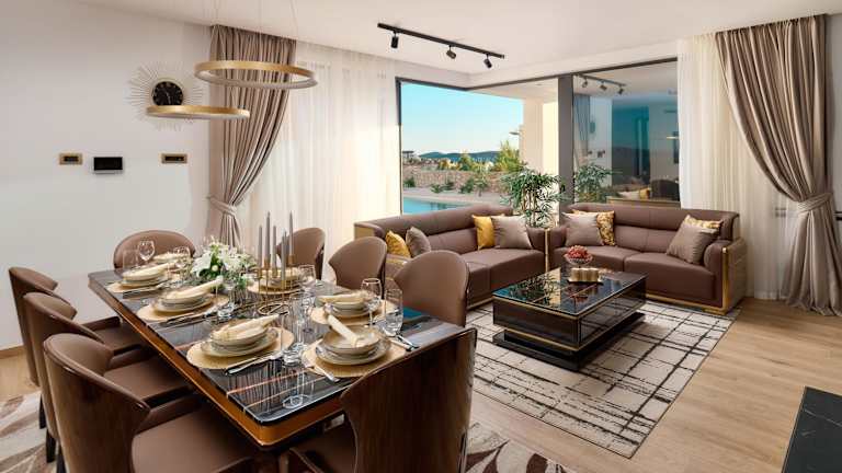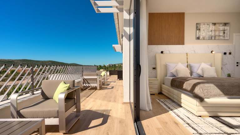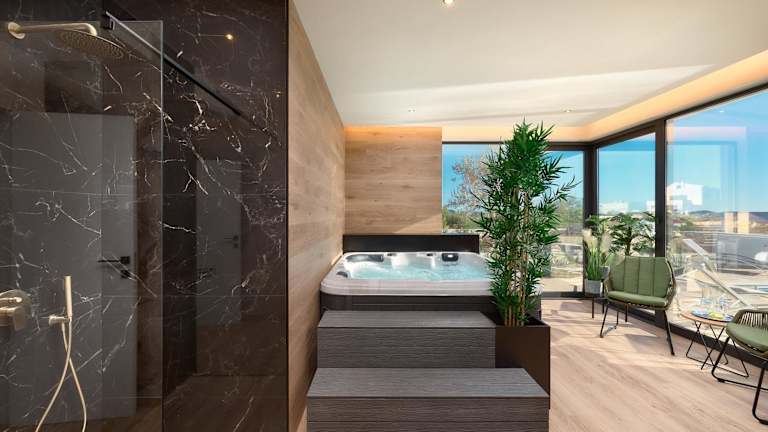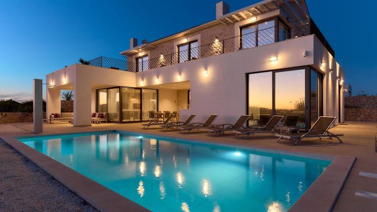 Die Villa ist klimatisiert und umfasst 4 Schlafzimmer sowie ein Wohnzimmer. Die voll ausgestattete Küche ist mit einem Kühlschrank und einer Kaffeemaschine ausgestattet. Es gibt insgesamt 5 Badezimmer, die sowohl über Duschen als auch über einen Whirlpool verfügen.