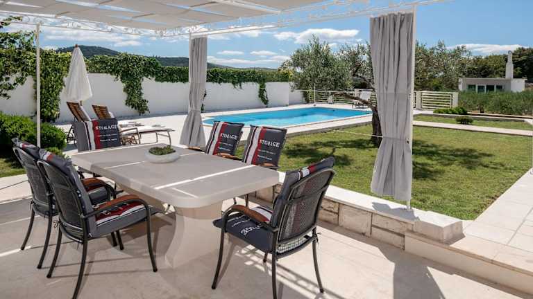 Die Villa Lilin San liegt in einer ruhigen Siedlung in Donji Humac, einem charmanten Dorf auf der Insel Brac. Der nächste Strand befindet sich in Supetar, etwa 8 km entfernt. Von dort aus können Sie mit der Fähre den Flughafen Split erreichen, der etwa 50 km entfernt ist. Die Lage der Villa bietet Ihnen die Möglichkeit, die Ruhe und Schönheit der Insel zu genießen und gleichzeitig leicht zu den verschiedenen Attraktionen und Stränden zu gelangen.