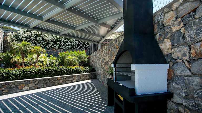 Die voll ausgestattete Küche der Villa beinhaltet einen Kühlschrank und eine Kaffeemaschine, was die Selbstverpflegung ermöglicht.