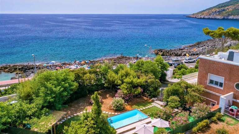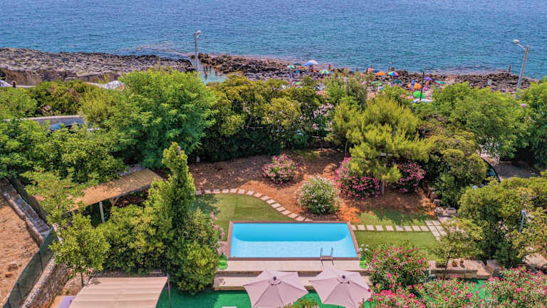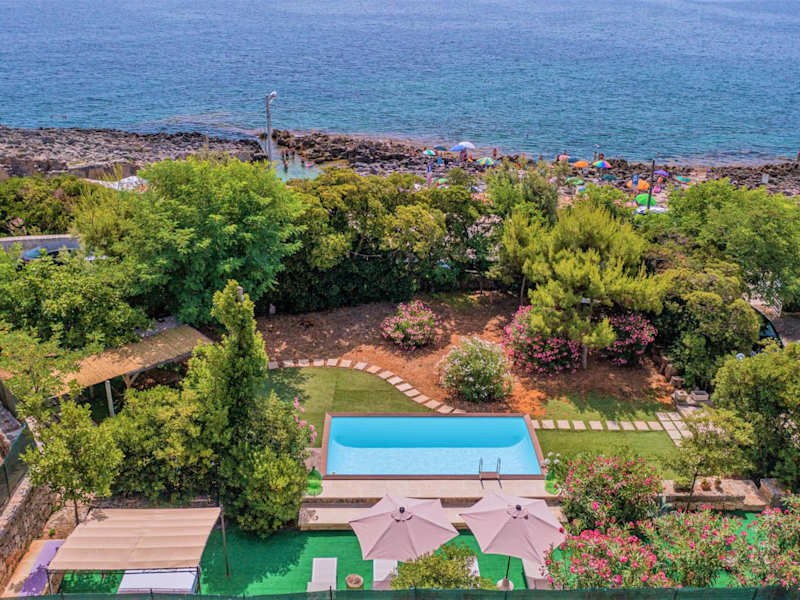 Die Villa Lina bietet einen saisonalen Außenpool, in dem Sie sich an warmen Tagen erfrischen können. Es gibt auch einen schönen Garten und eine Terrasse, auf der Sie entspannen und den Meerblick genießen können. Für Familien gibt es einen Wasserpark und einen Kinderspielplatz.