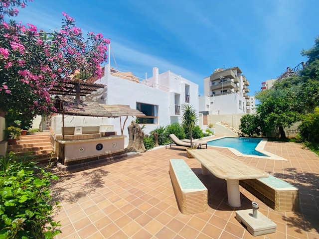 Die Villa urbana con Piscina in Playa den Bossa bietet einen eigenen Balkon und einen privaten Pool. Die Unterkunft ist klimatisiert und verfügt über eine Terrasse mit Gartenblick. Es handelt sich um ein Ferienhaus, das von einem privaten Gastgeber verwaltet wird.