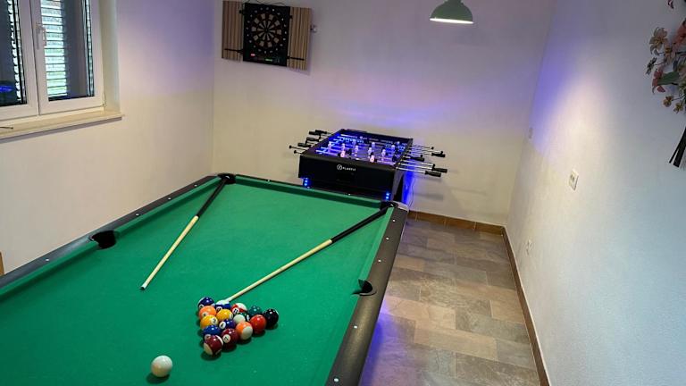 Die Villa Lujko verfügt über 7 wunderschön gestaltete Schlafzimmer, die Ihnen einen erholsamen Schlaf garantieren. Das klimatisierte Wohnzimmer lädt zum Entspannen ein, während die voll ausgestattete Küche mit einem Kühlschrank und einer Kaffeemaschine Ihnen ermöglicht, Ihre eigenen Mahlzeiten zuzubereiten. Mit insgesamt 4 Badezimmern, ausgestattet mit Badewanne oder Dusche und einem Haartrockner, bietet die Villa Lujko ausreichend Platz und Komfort für alle Gäste.
