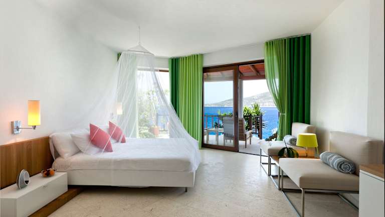 Die Villen im Hotel Villa Mahal sind elegant und stilvoll eingerichtet und bieten einen luxuriösen Rückzugsort für Ihren Aufenthalt. Jede Villa verfügt über Annehmlichkeiten wie einen Flachbild-Sat-TV, eine iPod-Dockingstation und kostenfreies WLAN. Einige Villen bieten auch einen eigenen Balkon oder eine Terrasse, auf der Sie die Aussicht auf das Meer genießen können.
