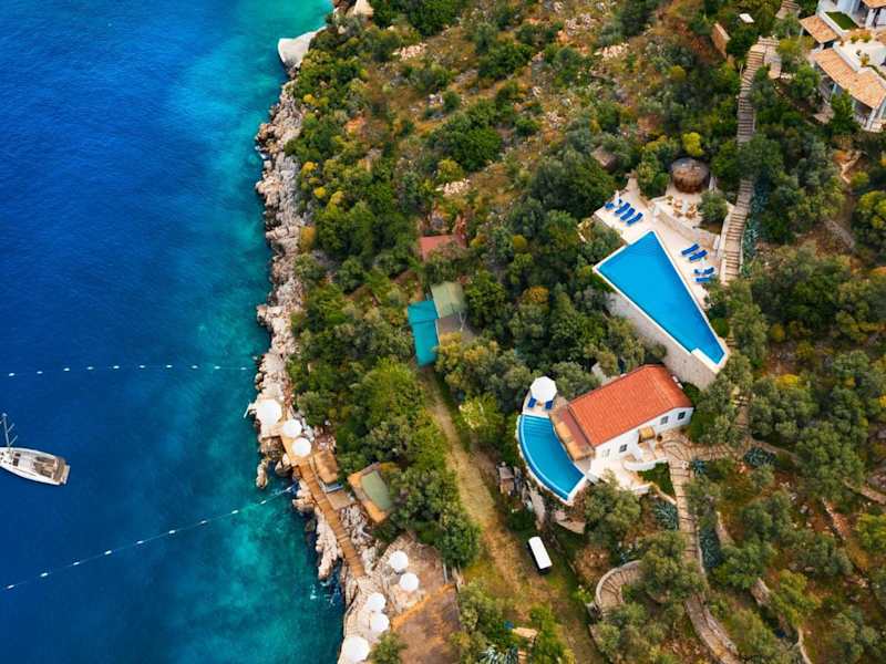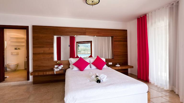 Das Hotel Villa Mahal in Kalkan bietet seinen Gästen einen luxuriösen Aufenthalt mit einem eigenen Strandbereich, Wassersportmöglichkeiten und einem herrlichen Panoramablick auf das Meer. Entspannen Sie am Außenpool und genießen Sie erfrischende Getränke an der Bar. Die eleganten Villen verfügen über moderne Annehmlichkeiten wie einen Flachbild-Sat-TV und eine iPod-Dockingstation. Kostenfreies WLAN ist ebenfalls verfügbar. Das Hotelrestaurant bietet eine herrliche Aussicht auf die Bucht und serviert köstliche Mahlzeiten. Eine 24-Stunden-Rezeption und eine Autovermietung stehen Ihnen ebenfalls zur Verfügung. Die Umgebung eignet sich ideal zum Schnorcheln und der Strand Kaputas sowie der Yachthafen Kalkan sind nur wenige Kilometer entfernt.