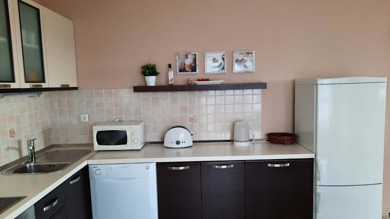 Die Unterkunft verfügt über eine voll ausgestattete Küche mit Kühlschrank, Geschirrspüler, Ofen, Mikrowelle und Herdplatte. Grillmöglichkeiten sind vorhanden, um Gästen eine flexible Essenszubereitung zu ermöglichen.